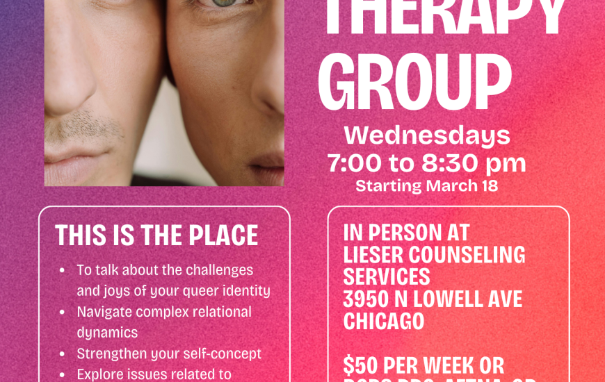 This is a weekly, ongoing, in-person therapy process group exclusively...