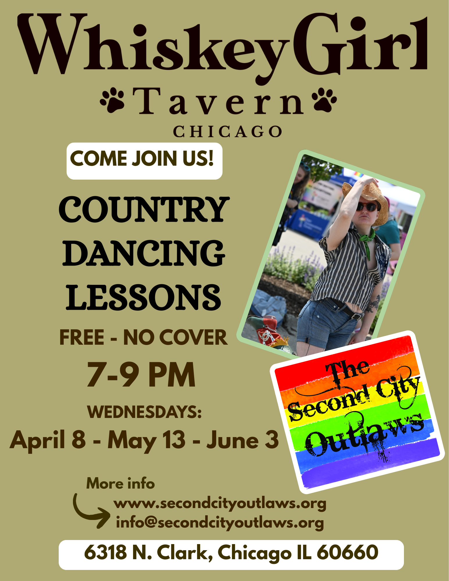 Whiskey Girl Tavern 6318 N Clark St, Chicago, IL, United StatesJoin us for a fun night of FREE Country Dancing...