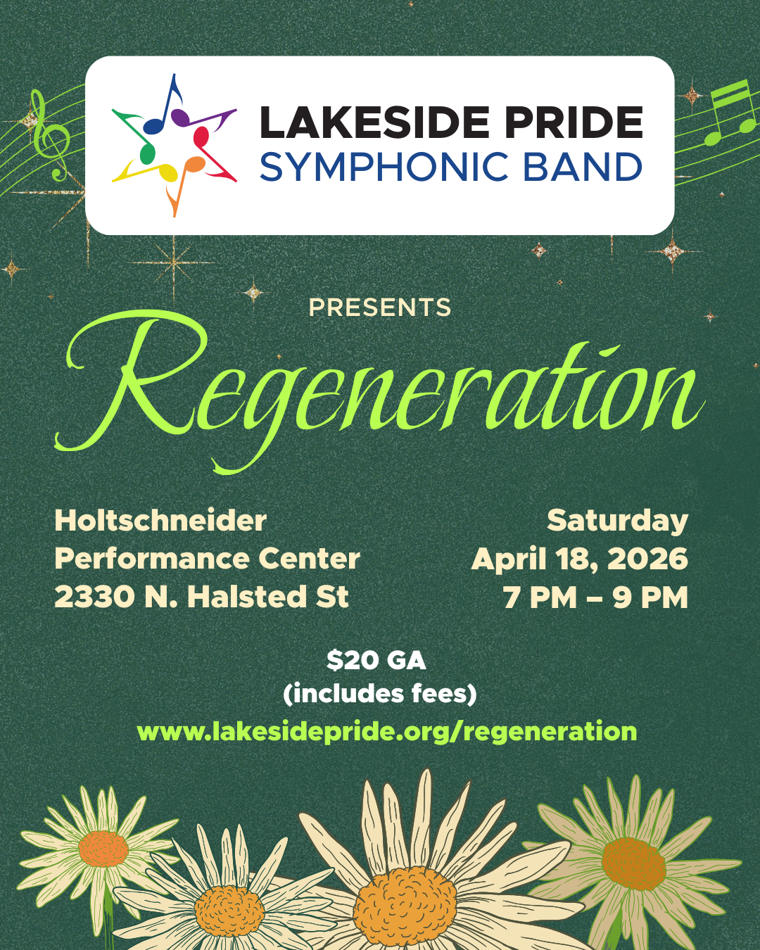 The Lakeside Pride Symphonic Band emerges from its winter sleep, ready to captivate you with the restorative sounds in this spring concert. Bask in the “Golden Hour” by Cait Nishimura, or rise from the self-reflection of “Rest” by Frank Ticheli. Join us on April 18 to hear more regenerative melodies that give new vigor to life.
